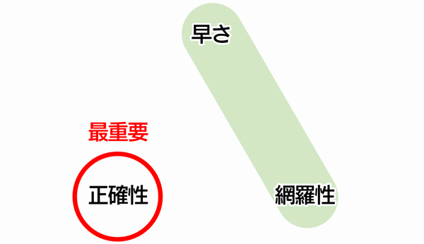 「早さ」「正確性」「網羅性」は
